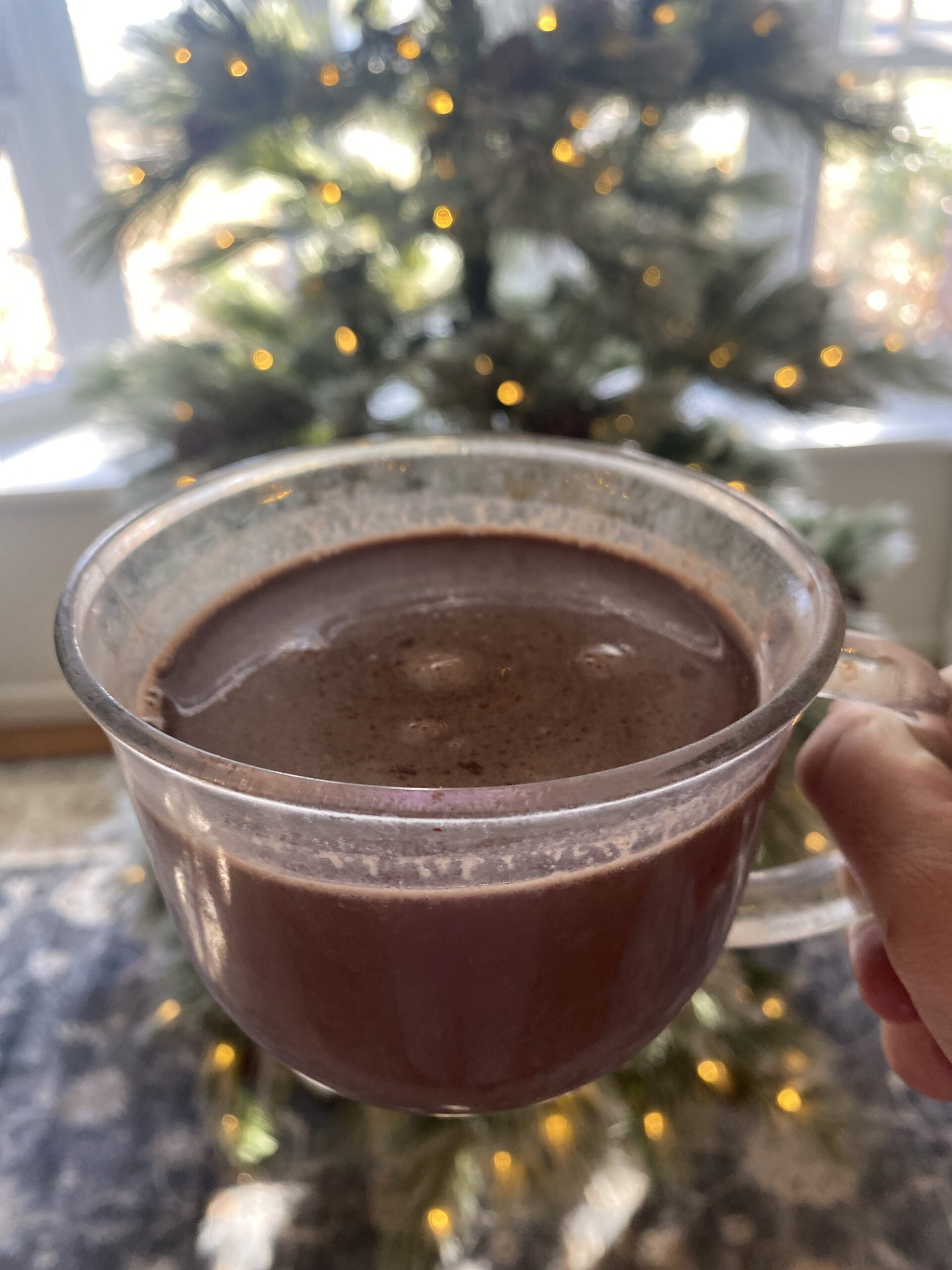 This cocoa is both delicious and nourishing. It does not include any processed sugars, and it has gut-nourishing ingredients including cacao powder (which is considered a superfood and is also virtually caffeine-free)* and, believe it or not, chicken broth; don’t worry, you won’t be able to taste it, but it gives it a lovely depth. You can indulge in chocolatey goodness without the guilt knowing that you’re satisfying your chocolate craving while also nurturing your body.